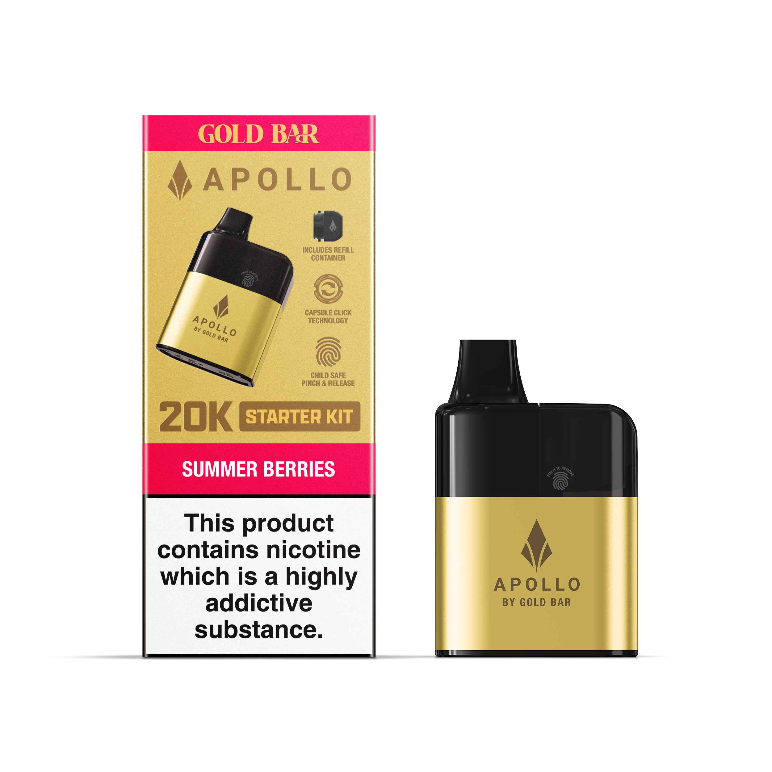 The Apollo replacement pods house built-in hyper mesh coils that’ll boost the flavour of your vape. The included e-liquid features a 20mg nic salt blend, which will provide a smooth throat hit and fast craving satisfaction. Plus, when your e-liquid runs out, you can purchase replacement refill containers, or packs containing a refill container plus a prefilled pod. You’ll find them in fruit, soda and ice blends based on the best-selling Gold Bar disposable flavours, including: