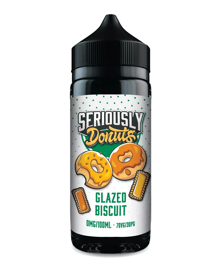 Seriously Donuts Glazed Biscuit E-liquid Shortfill. A Tasty Tea Time Treat. Donut infused with crumbs of Biscuit topped with a Sugar glaze.