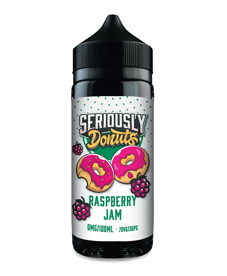Seriously Donuts Raspberry Jam E-liquid Shortfill. Gorgeously Sweet Raspberry Jam oozing from the centre creating a Fruity layer between each bite!
