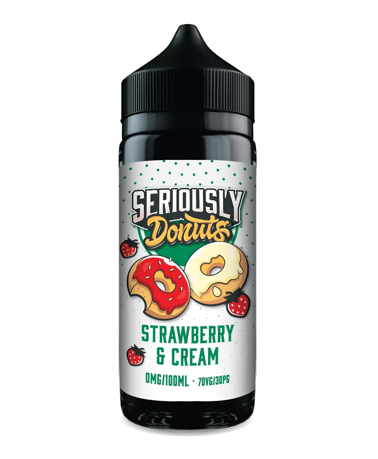 Seriously Donuts Strawberry and Cream E-liquid Shortfill. Everyones Favourite combination of Thick Luscious Cream and Sweet Strawberries..