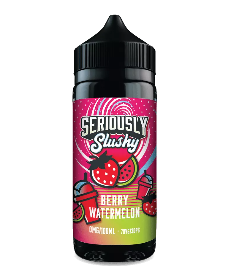 Seriously Slushy Berry Watermelon E-liquid Shortfill. A Juicy Mix of Ripe Strawberries and Slices of Red Watermelon make this stunning Cool Combination, irresistible!