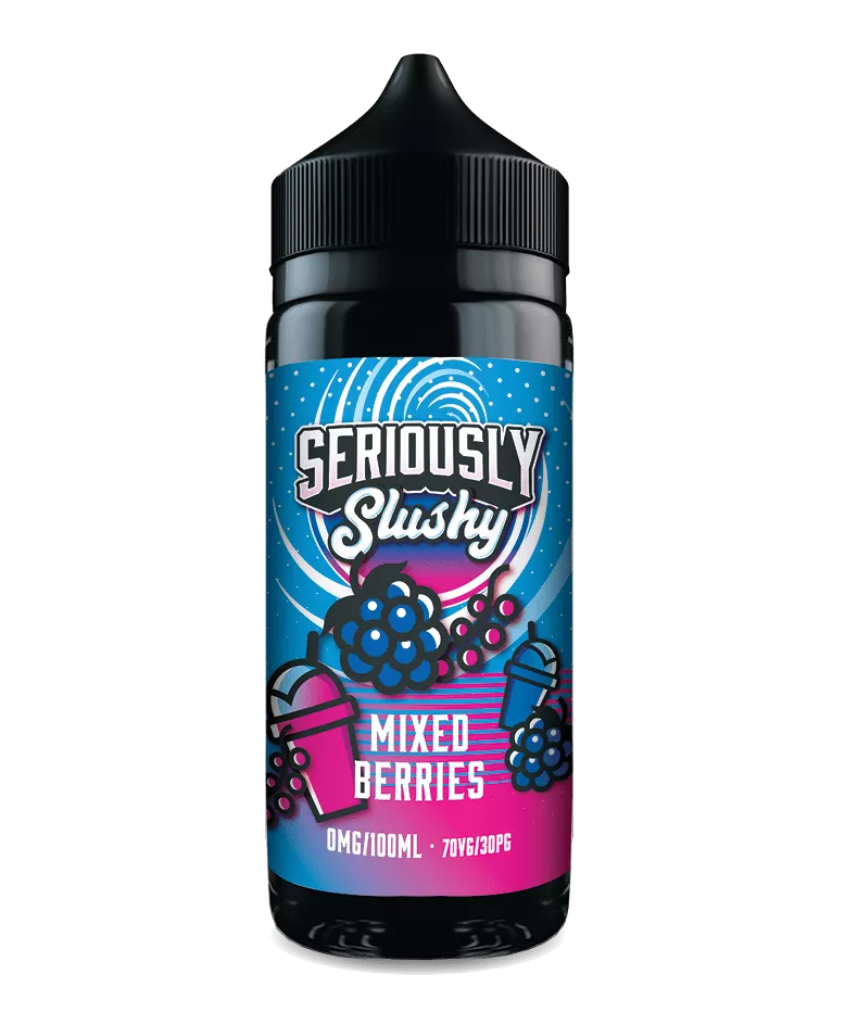 Seriously Slushy Mixed Berries E-liquid 100ml Shortfill. A Concoction of Succulent Red, Blue and Black Berries perfectly combined with a light coolness to make your mouth water!