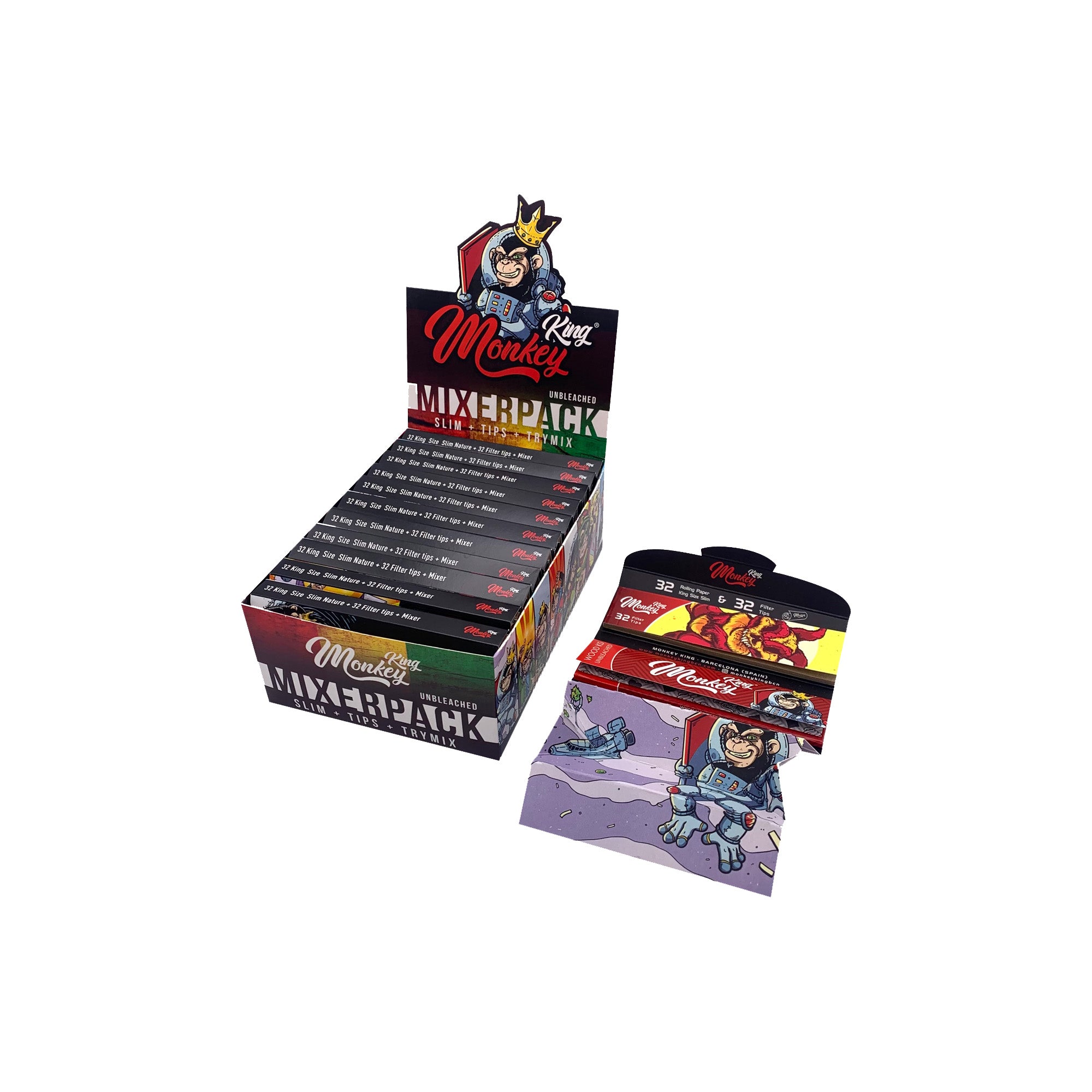 Bulk buy 24 packs of smoking starter kits online featuring a card rolling tray, rolling papers and card filter tips. Featuring unique Monkey King designs, each smoking starter pack contains king size unbleached rolling papers and pre-punctured card filter tips for increased airflow and a cleaner burn.