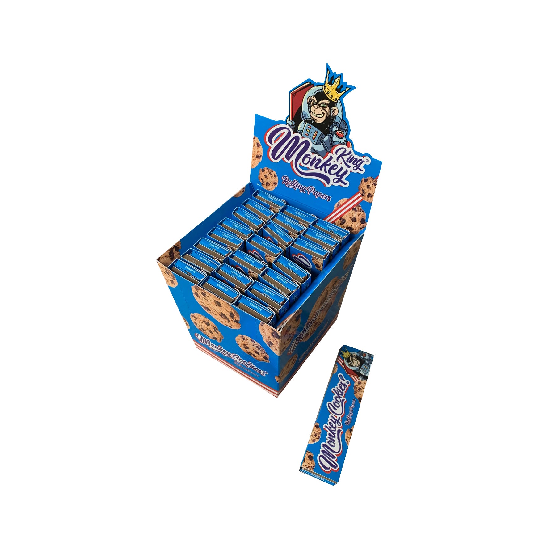 Bulk buy cookie scented rolling papers and tips online from Monkey King, featuring scented packaging with a delicious cookies smell that adds a unique twist to your rolls. Made with king size slim ultra thin papers for a cleaner burn and purer flavour, these ‘smell papers’ and tips are available in 24 packs at UK wholesale prices.