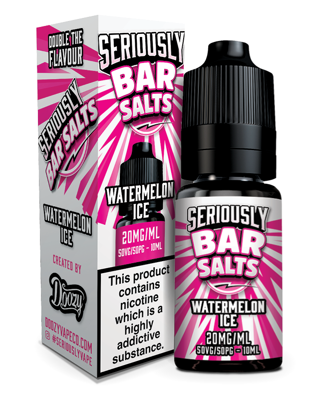 Seriously Bar Salts Watermelon Ice. The Sweet Refreshing Taste of Crispy Red Watermelon with Cubes of Ice.