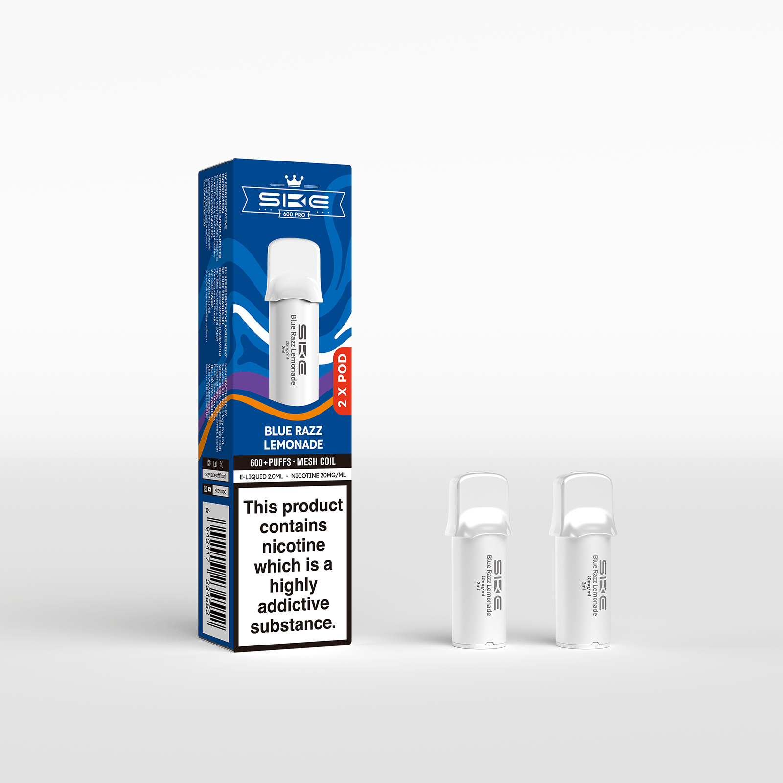 Designed exclusively for the SKE 600 Pro Prefilled Pod Kit, the SKE 600 Pro Prefilled Pods deliver a premium vaping experience with rich flavors, a smooth throat hit, and satisfying nicotine strength. Each pod is prefilled with 2ml of 20mg nicotine salt e-liquid, ensuring the same bold flavor and consistent inhale as the beloved SKE Crystal disposable range. With a hassle-free plug-and-play design, these pods make it easy to switch flavors or replace empty pods—keeping your vaping experience clean, simple, and enjoyable.