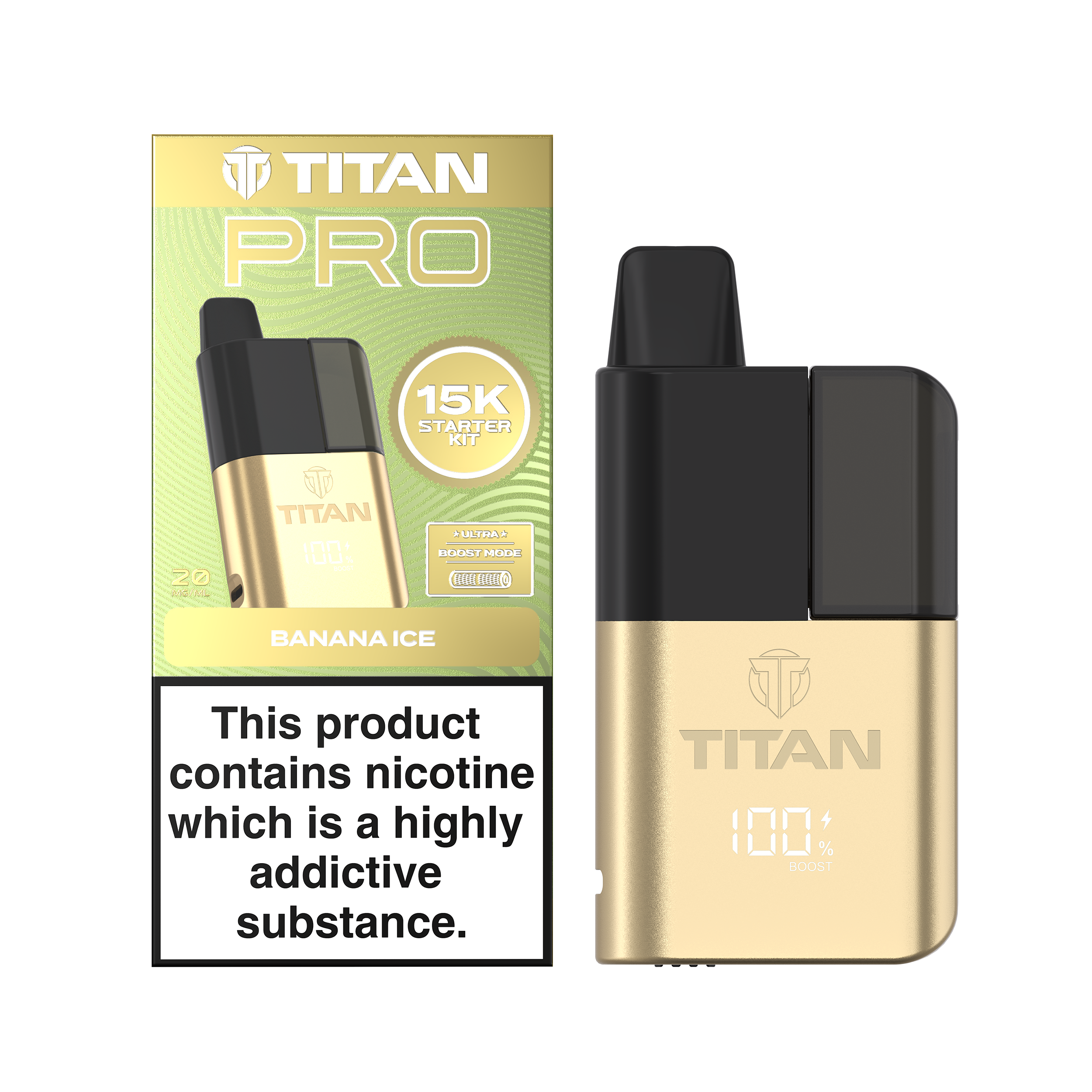 Titan Pro 15K kit is ideal if you are looking for a big puff vape that will last longer between refills. The kit comes with a pod and refill container, both prefilled with nic salt e-liquid. It can deliver up to 15,000 puffs out of the box. Once the pod and container are empty, they can be replaced with new ones.