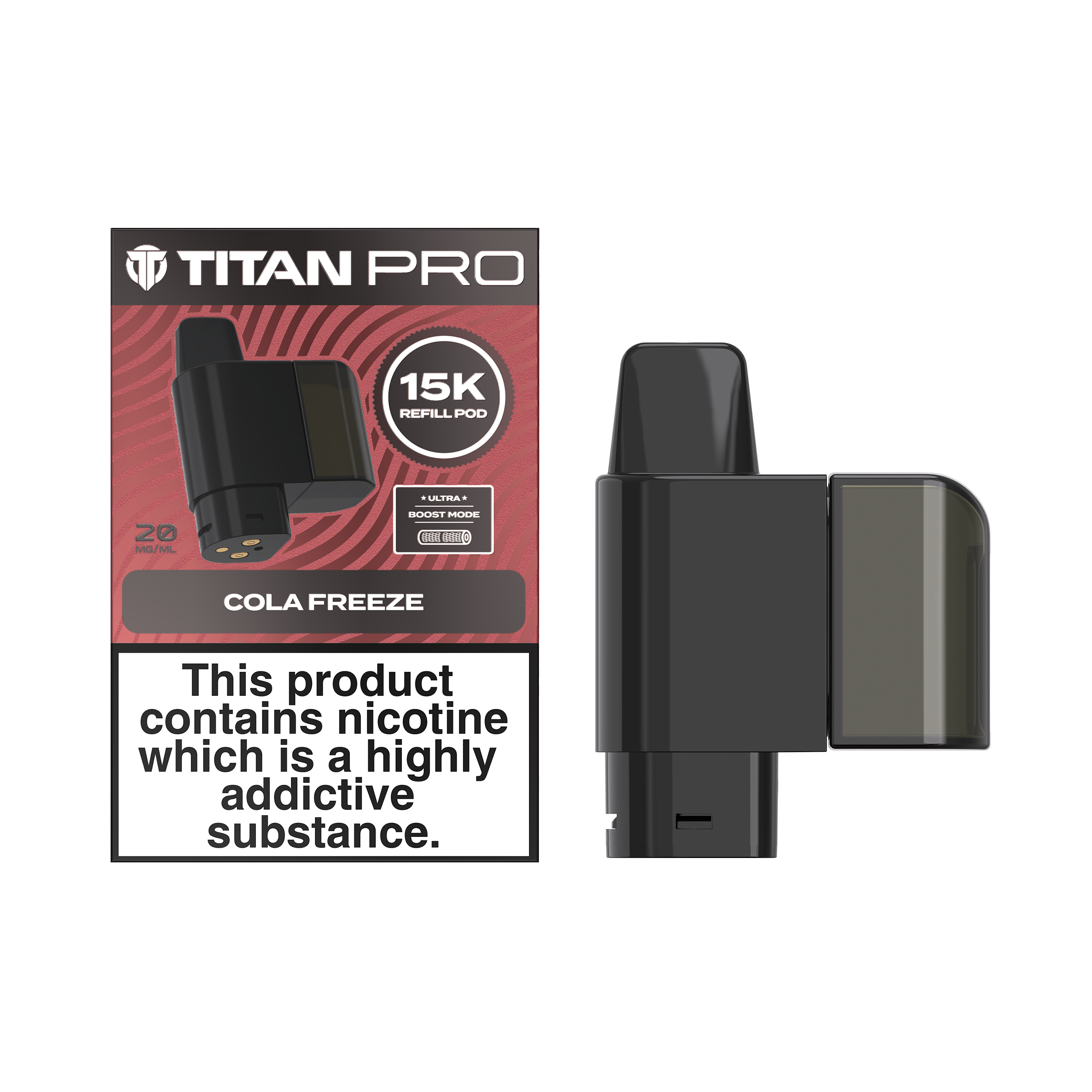 Titan Pro 15K refills are designed to be used with the Titan Pro 15K big puff vape kit. Each pack contains a 2ml prefilled pod and a 10ml refill container filled with nic salt e-liquid. The pod houses a mesh coil, which boosts flavour by heating e-liquid quickly and evenly. These refill packs are ideal for MTL (Mouth To Lung) vaping, and will produce a small amount of vapour with an inhale that feels similar to a cigarette.