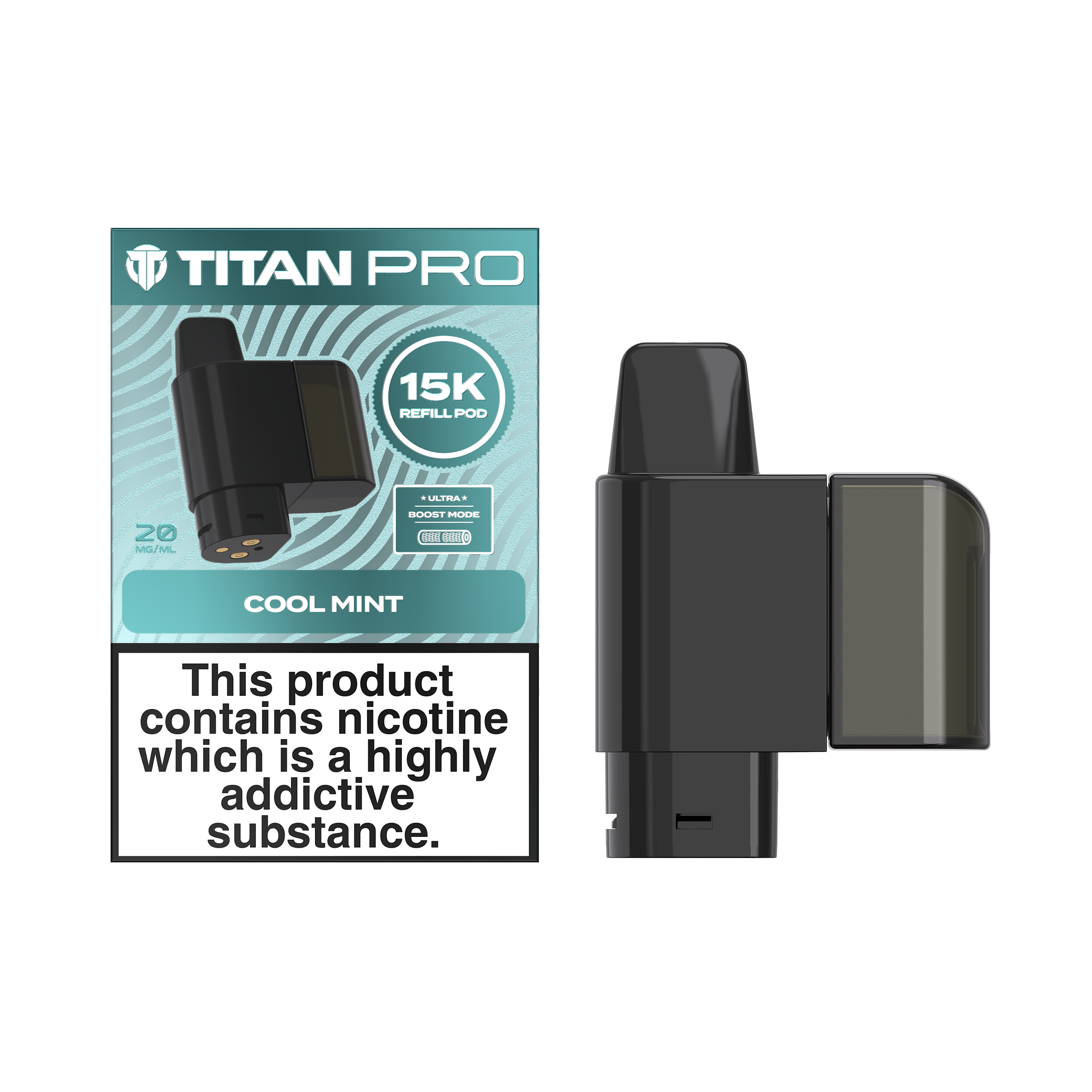 Titan Pro 15K refills are designed to be used with the Titan Pro 15K big puff vape kit. Each pack contains a 2ml prefilled pod and a 10ml refill container filled with nic salt e-liquid. The pod houses a mesh coil, which boosts flavour by heating e-liquid quickly and evenly. These refill packs are ideal for MTL (Mouth To Lung) vaping, and will produce a small amount of vapour with an inhale that feels similar to a cigarette.